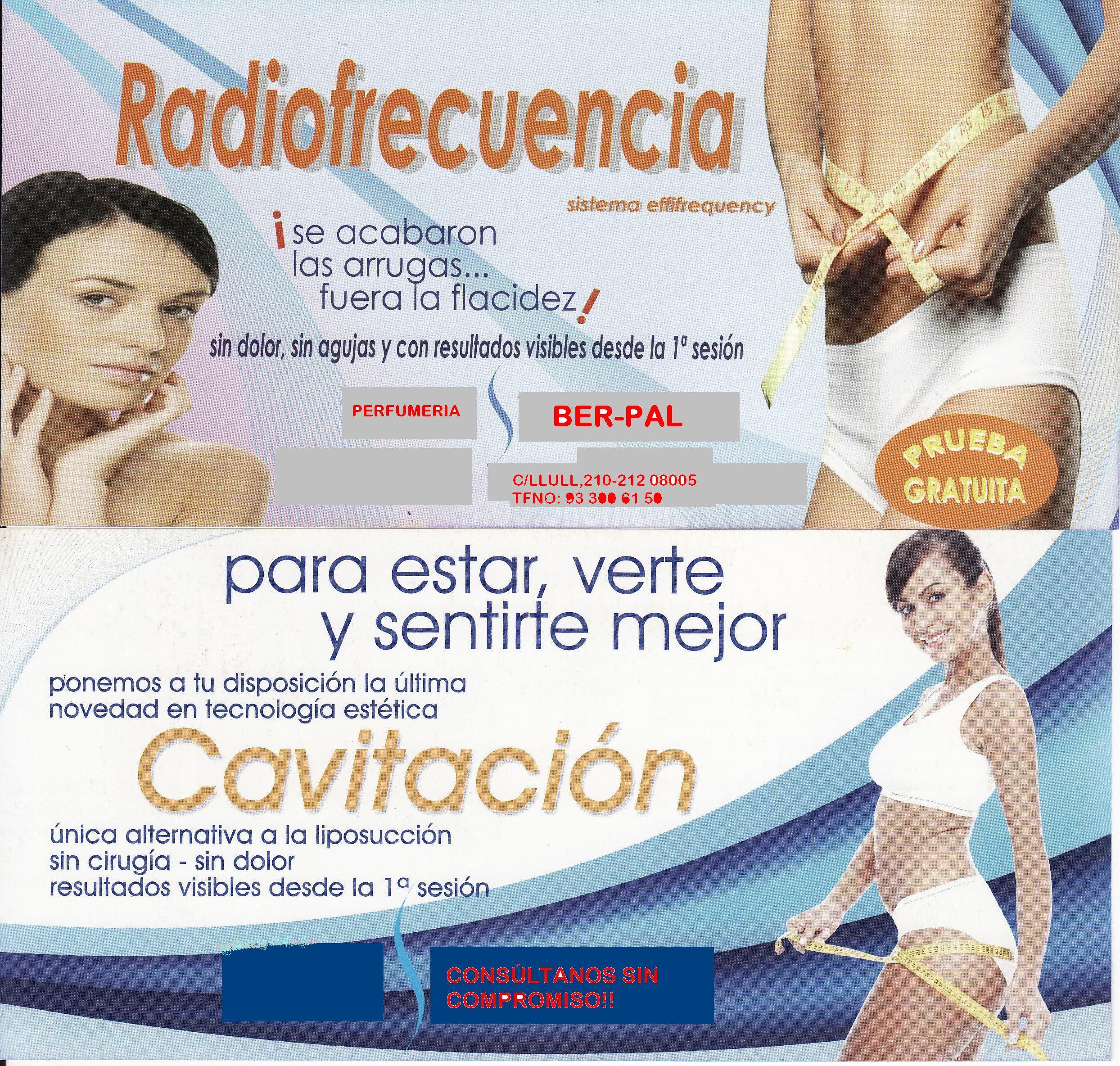 No te preocupes, PERFUMERIA y ESTÉTICA BER-PAL te ayuda a poner a punto tu piel y tu silueta. Sí, amigas, es el momento de empezar la «OPERACIÓN BIKINI». Ven a nuestras cabinas de estética y nuestro personal especializado te diseñarán un tratamiento corporal a medida, ya sea con masaje terapéutico como con el tratamiento de CAVITACIÓN y PRESOTERAPIA corporal.